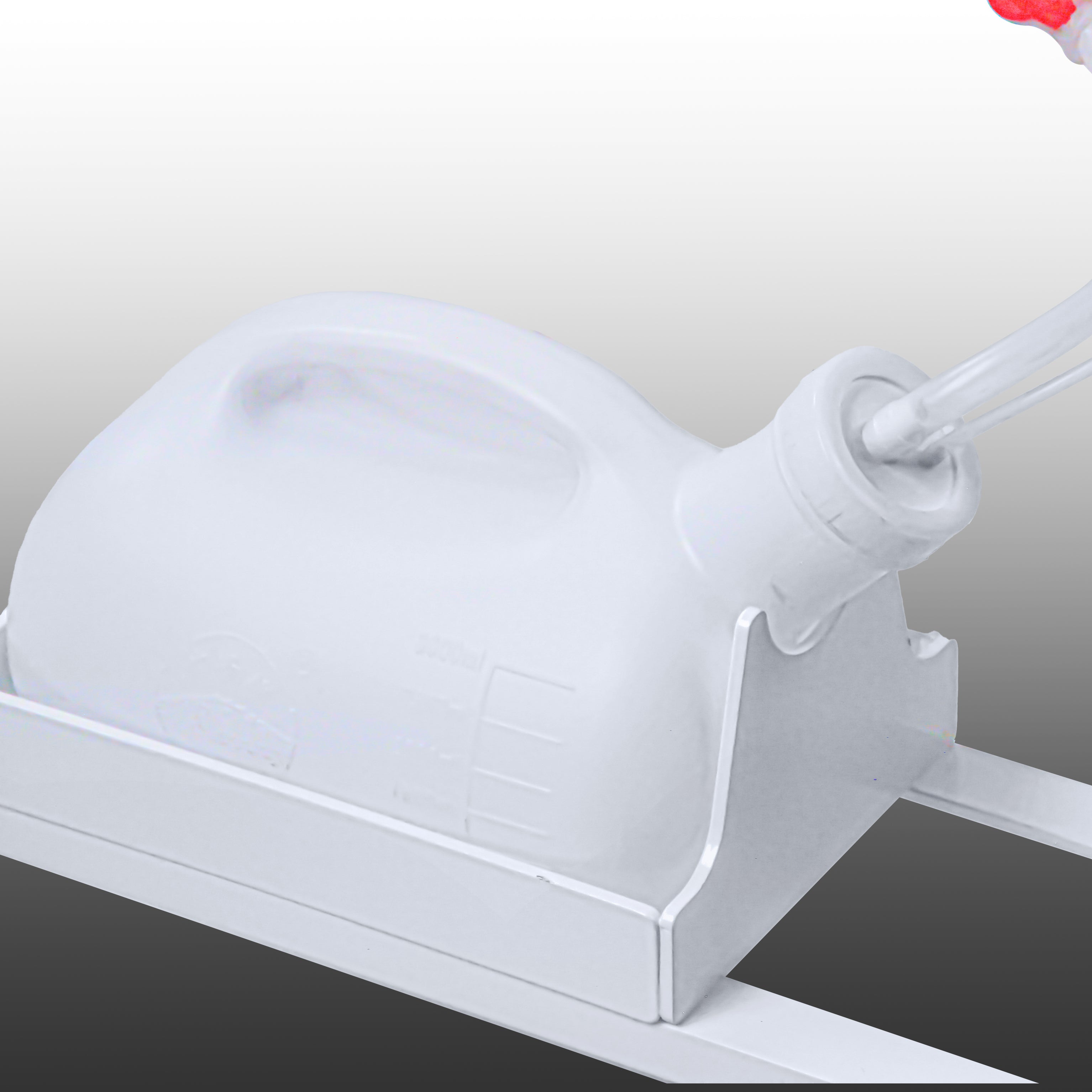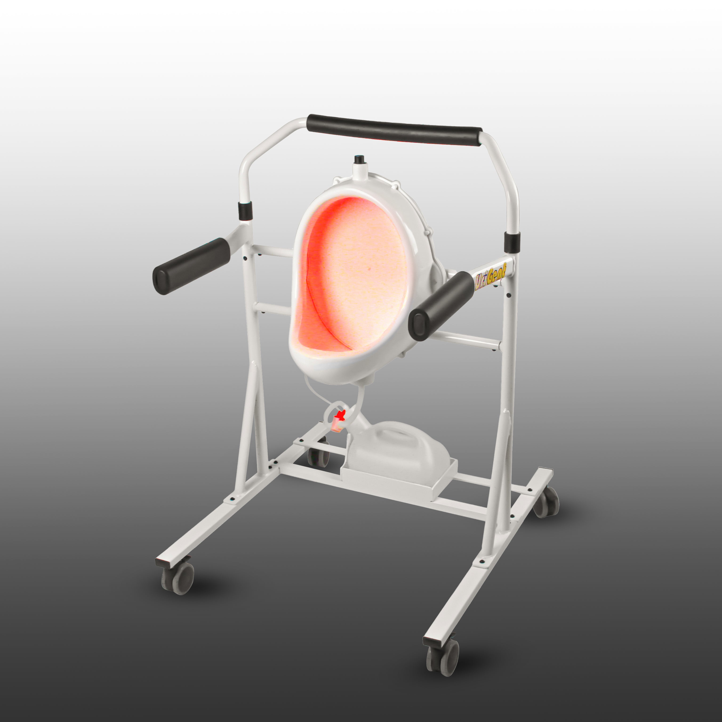 The VersaWell UriGent® Men’s Portable Bedside Urinal has an opening at the top where a small flashlight can be inserted. It has a button on the top that the user may press to light the urinal at night for positioning to urinate directly into the urinal without spilling urine. There is an upper grab bar forward of the top of the urinal to reach and hold adding stability as a person rises from the bed. The urine collector is a three-liter tank located at the base of the unit. Three liters is the average a person eliminates in a twenty-four-hour period.